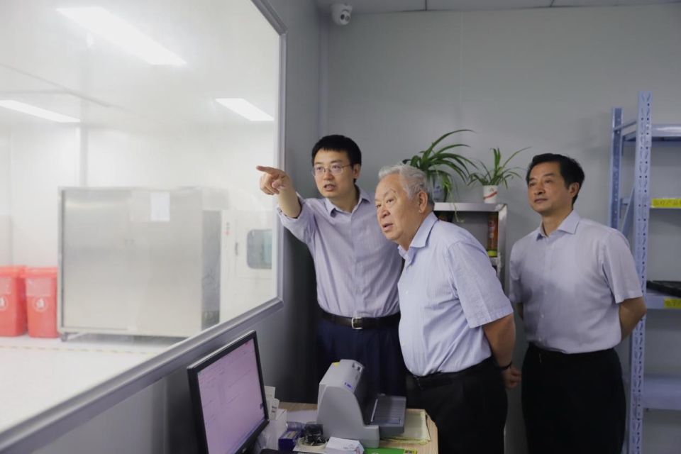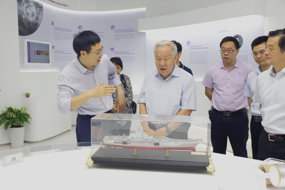 Academician Gu and his delegates visited the exhibition hall of the institute. The Head of the institute reported to Gu on their development model and research findings.