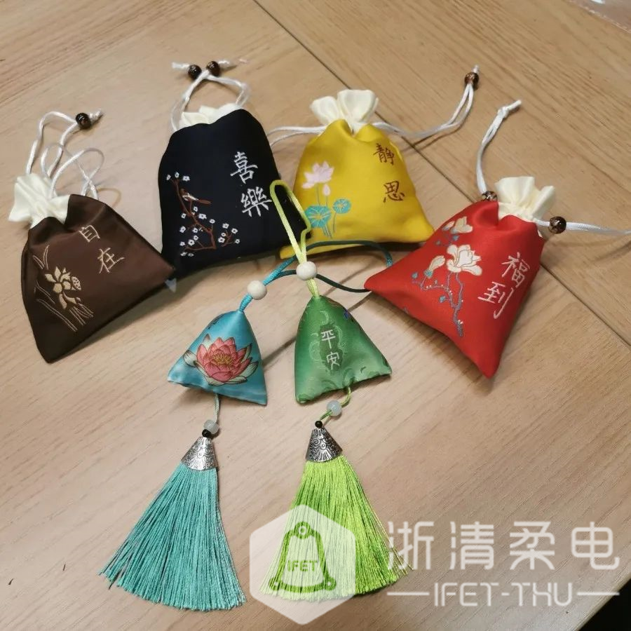 製作(zuò)香(xiāng)囊前,主持(chí)人向大家介紹了端(duān)午節的(de)習俗,以及香囊中填料(liào)的中藥效用和香囊的製作方法。大家看著桌子(zǐ)上的串珠、彩布、流蘇(sū)等材料,都迫不及待地動起手來,不一會(huì)兒一個個香囊雛(chú)形就躍入眼簾了......再往(wǎng)裏麵裝上艾葉、薰衣草、白芷、藿香(xiāng)等具有不同(tóng)功(gōng)效的中藥,縫(féng)合,這精致(zhì)又飽滿(mǎn)的香囊就完成了。活動中,大家充滿歡聲笑語,用香囊來傳遞心意,把(bǎ)濃濃的端午情和對柔電院未來的向往縫入了這(zhè)多彩的香囊裏,用香囊的(de)清幽香氣,來表達對柔電院的祝福。