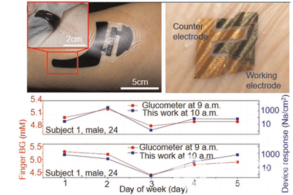 圖(tú)4. 基於(yú)電化學雙通道(ETC)的血糖(生物化(huà)學信號)監測器件
